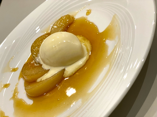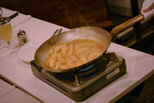先生が桃とリンゴジュースをフランベしたデザートを作ってくれました✨