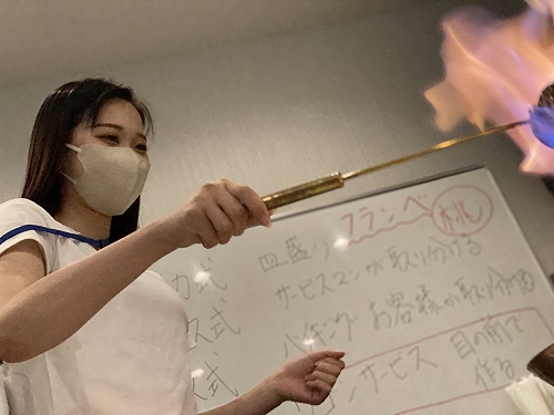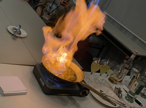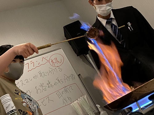 ブライダル・ホテル学科では、フランベを体験しました♪