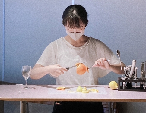 授業で習ったフルーツカットも披露!