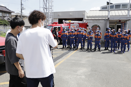 今回、福山消防団様と本校のネット動画クリエイター学科の1年生が