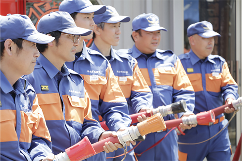 当日は暑い中、消防団の皆様も学生達のセリフ指示や