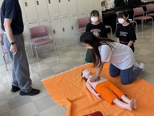 まずは心臓マッサージのやり方を教えてもらいました!