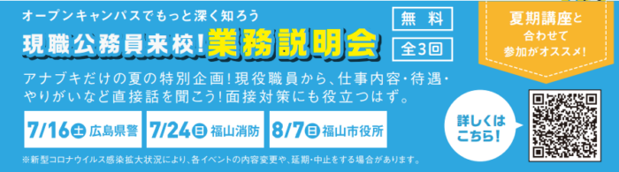 ▽3回連続で現役公務員さんがやってきます!次回8/7(日)は人気の福山市役所!