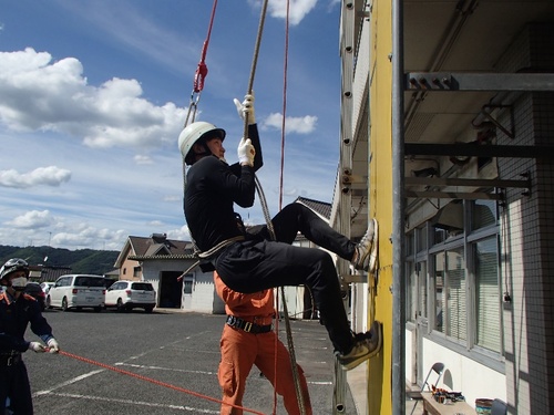 ロープ応用登はん訓練。普段の体力トレーニングの成果が出せたかな?