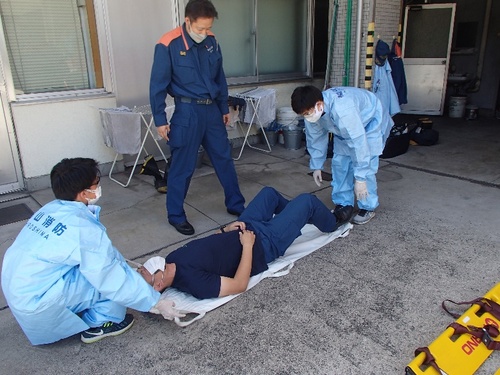 負傷者・病人等の救急搬送の訓練。