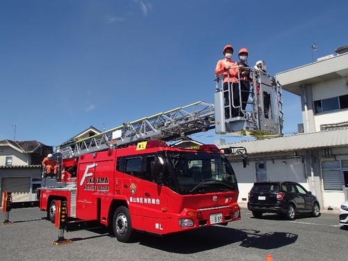 マンションなど高層階の火災にも対応した消防はしご車にも乗車させてもらいました。