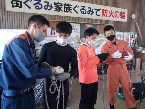 様々な災害を想定した訓練。ロープの結索方法も学びました。