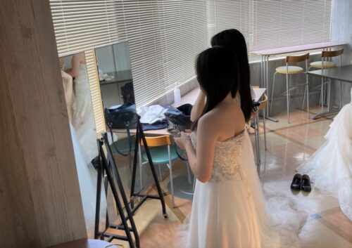 ドレスコーディネーターさんは、新婦さんの要望も聞きつつ、その人に合ったドレスをコーディネートしていきます。