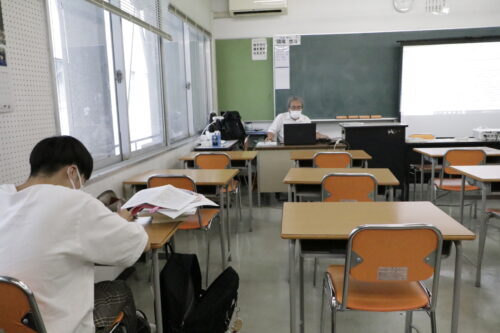 学校に登校して勉強している学生さんもいました。