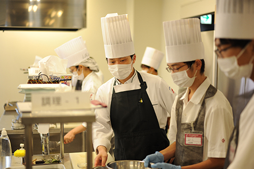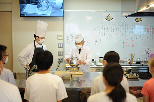 少し雰囲気の変わった校舎で実施したのはというと高度調理学科は「日本料理」の天ぷら。