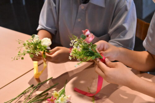 ブライダル・ホテル学科ではミニブーケを作成してもらいました!
