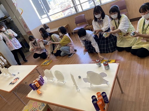さて、こども未来教育学科ではペットボトル空気銃を作って、楽しいゲームをやりました!!