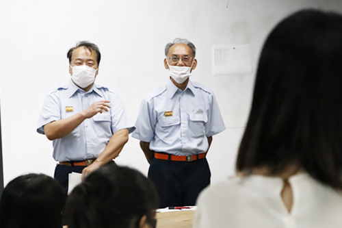 まず担当者様からは消防団の仕事内容や災害時の活動などを説明していただきました。