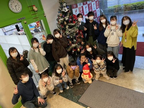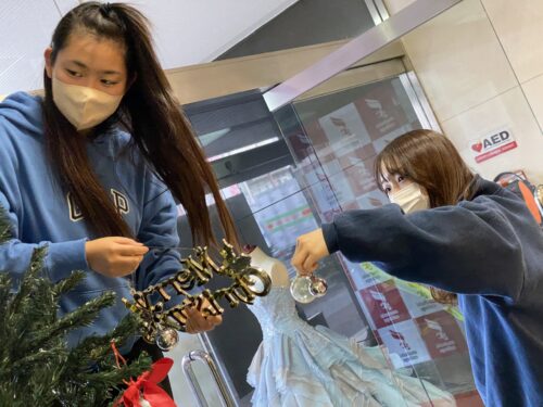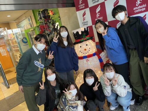 穴吹国際みらい専門学校(福山市入船町)にもクリスマスツリーとスノーマンが出現しました♪