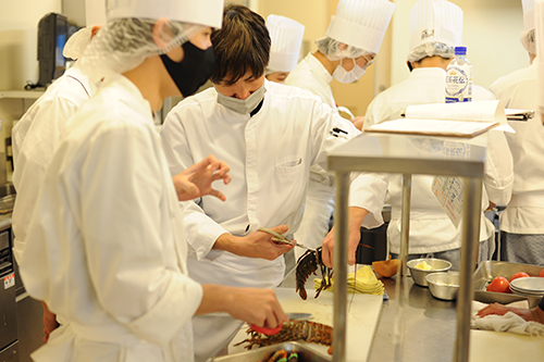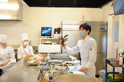 本日のレシピは、オマール海老のアメリカ風。活きオマール海老を始めて見た!という学生も居たのではないでしょうか。