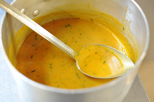 シェフの作ったソースも味見して、完成イメージを掴みます。