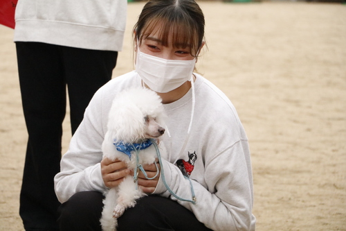 お別れの時は名残惜しそうに、スタッフ犬たちの頭をなでたり、教えてくれた学生に抱きついたりしていました!