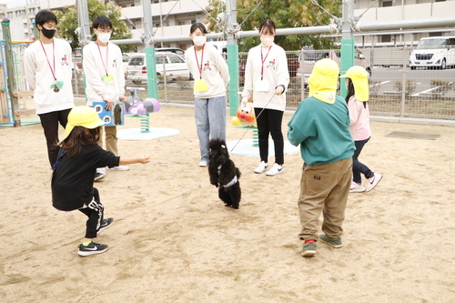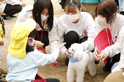 わんちゃんに慣れておらず最初は「怖い!」と言っていた園児たちも、1時間もたたず一緒にお散歩できるまでに!