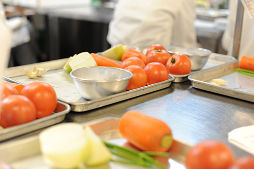デモンストレーションの後は、自分たちで調理開始。食材も出番を待っています。