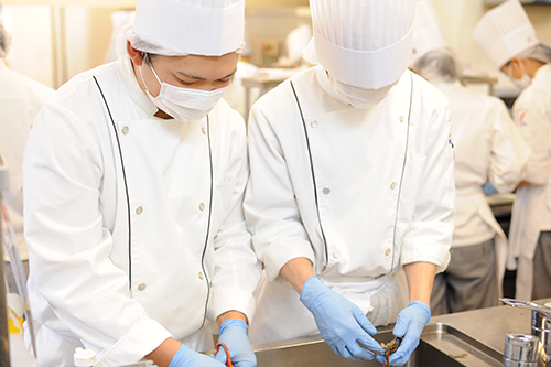 2年生もコロナ禍で特別実習が実施できておらず、オマール海老に触れてもらいたいということで