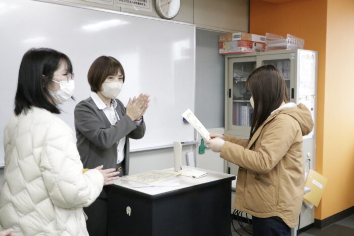 授業の初めに表彰を行いました!先生や同級生たちからも拍手!