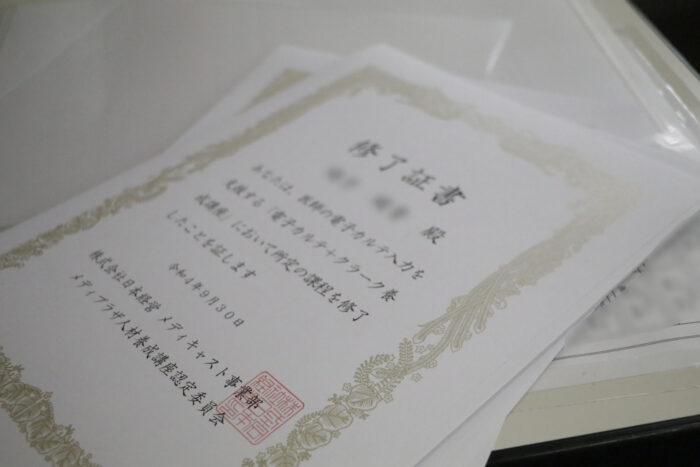 この日は「電子カルテクラーク養成講義」の修了証書も授与されました。