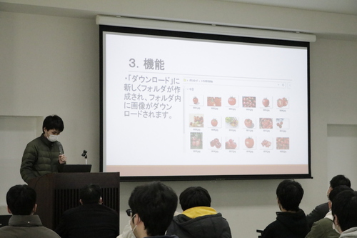 「卒業修了制作研究発表会」は個人またはチームで開発したシステムを発表し、審査するものです。