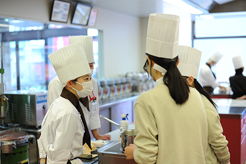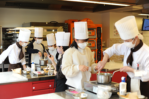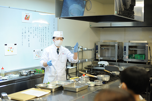 賑やかな実習風景。作る人も料理を楽しく!が基本です。