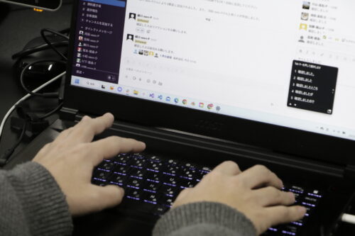 指導いただくゲーム会社や姉妹校とはオンラインシステムで接続し、時にはチャットを使ってコミュニケーションをとっていきます。