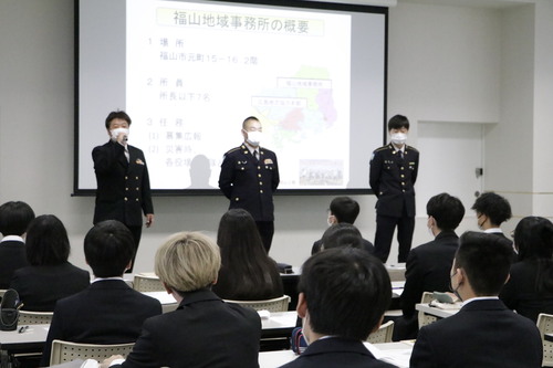 公務員系学科では、定期的に現役公務員の方をお招きして学生達を対象とした「業務説明会」を実施しています。