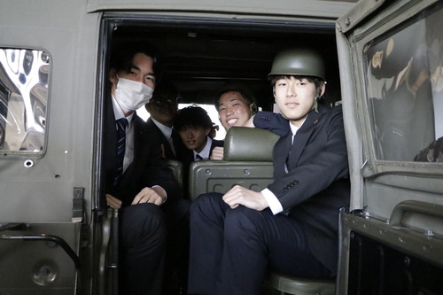自衛隊車両に試乗!初めて見る本物の車両に学生達もテンションが上がっていました。