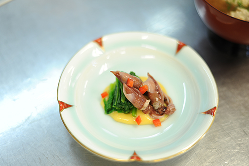高度調理学科2年生は日本料理実習。担当は専門調理師の免許を持っている山本先生。