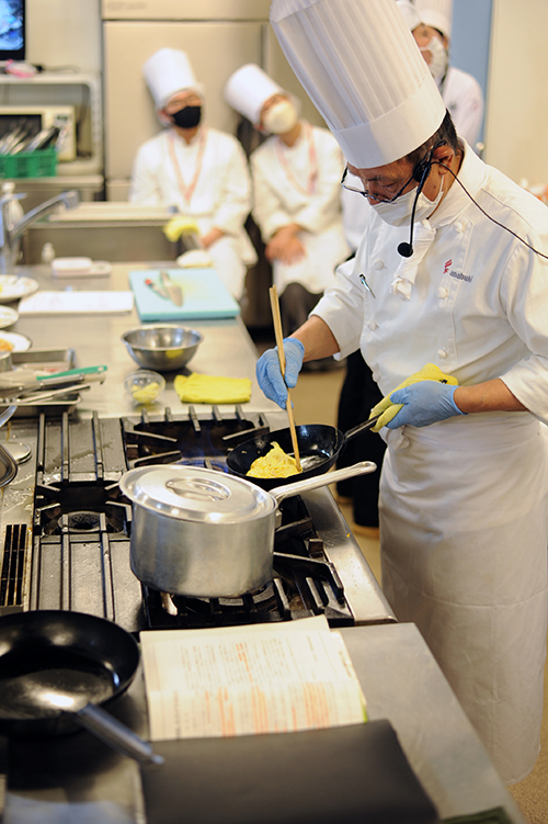 ここからオムレツのパートへ。学生は2回目の実習でしたが、前回は失敗したけど