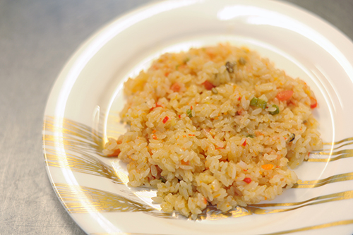 実習の内容は、西洋料理の基本であるオムレツと、ブイヨンで炊き上げる野菜ピラフでした。