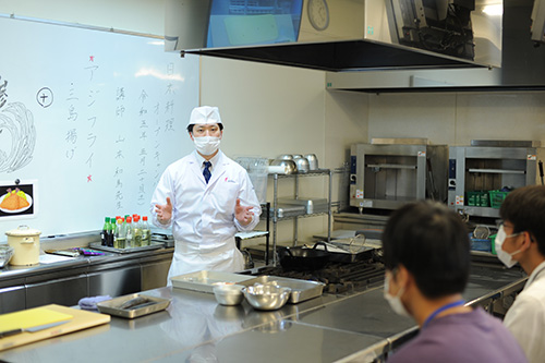 本日の高度調理学科メニューは「日本料理」のアジフライ。