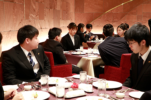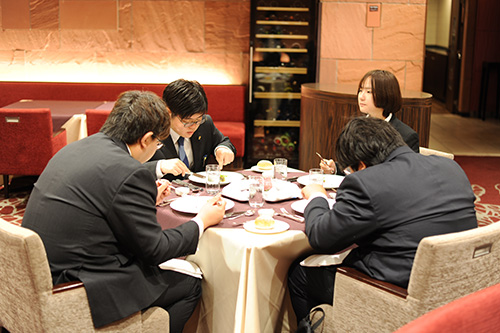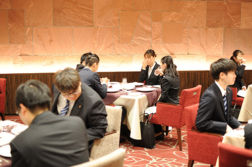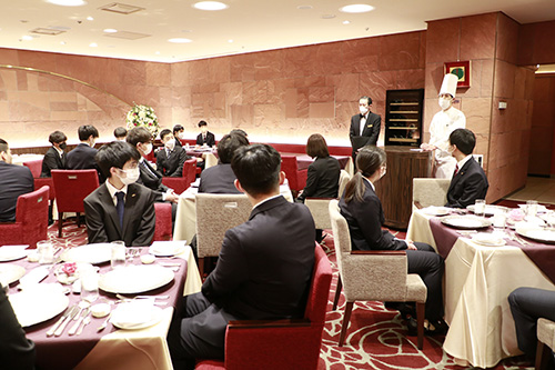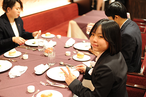 続いて、正午には高度調理学科1年生が初めてのテーブルマナー実習。