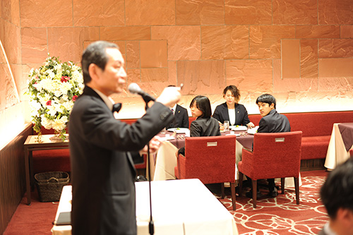 卒業生でもある星本料理長自らメニュー紹介をいただき、1年生も真剣に説明を聞いていました。