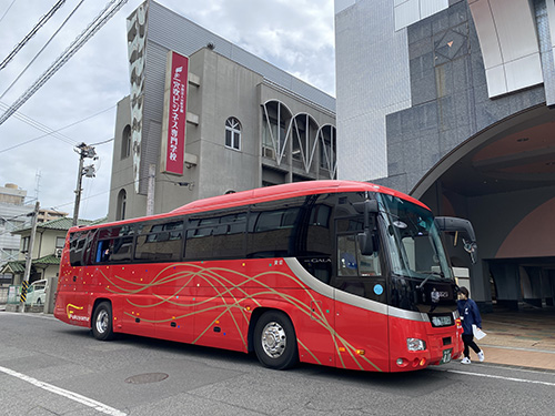 1時間目の始まる前に、学校前へ大型バスが到着!