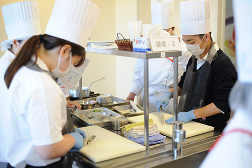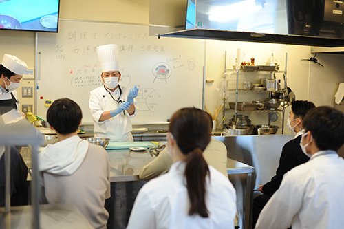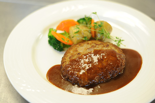 高度調理学科は、三原先生のハンバーグステーキ。(気合、入ってます)