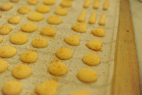 ビスキュイも絞って焼く所から。まさに授業通りの内容でした。