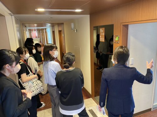 普段なかなか見ることのできないシティホテルの中を見学させていただきました。