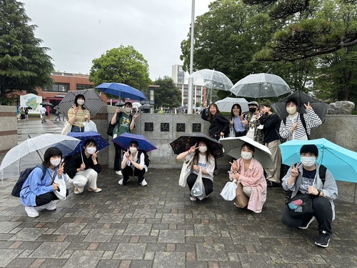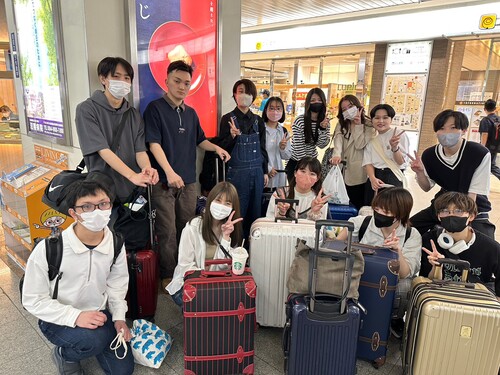 1班のみなさん。在学中ずっとコロナ禍だったので初めての外部研修に期待!