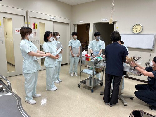 医療センターで活躍する動物看護師さん達の正確で連携の取れた仕事の様子を目の当たりにして、刺激を受けた学生も多かったようです!