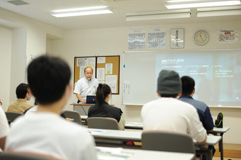 質疑応答では、学生から「沖縄という土地柄、魚料理の方が多く提供されるのか」や「シフト制の勤務スケジュール」、「キッチンマネジメントについて」など多くの質問が出ていました。