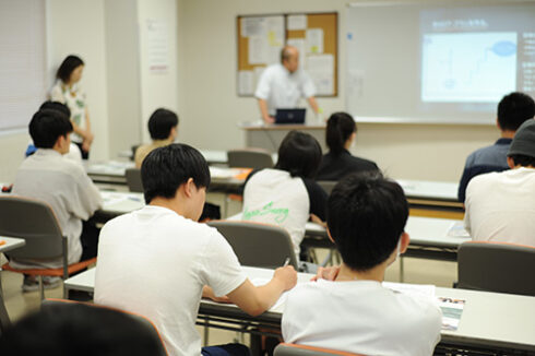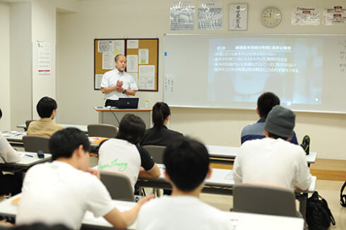 本日は、高度調理学科2年生を対象とした校内企業説明会。ご来校いただいたのは、シェラトン沖縄サンマリーナリゾートから元総料理長で、料飲顧問の井樋様と新卒採用担当の伊藤様のお二人。