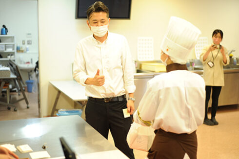真剣に商品と向き合う先生。