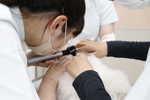 適切な治療を行うために、動物病院では「皮膚検査」を行って原因を特定します。