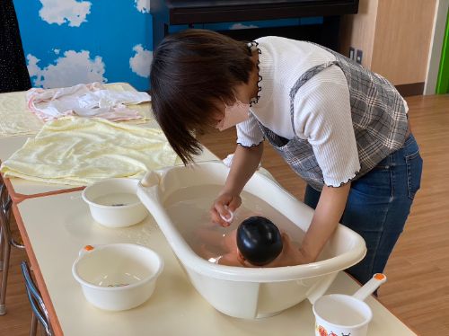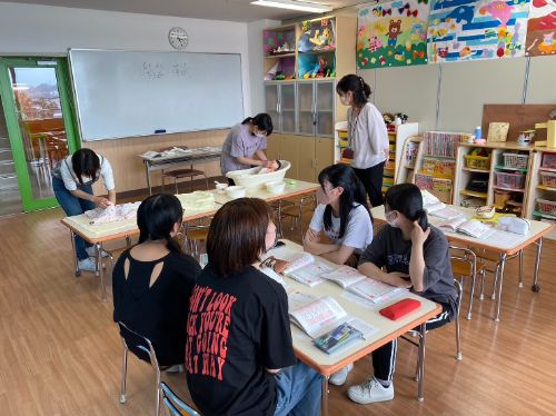 こども福祉教育学科(現:こども未来教育学科)3年生が「乳児保育」の授業におじゃましました。