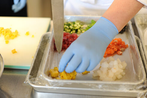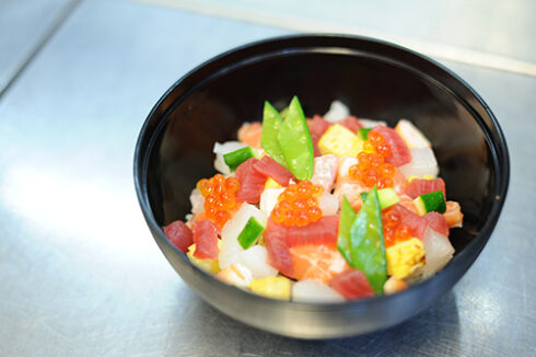 まずは、高度調理学科から。本日は日本料理の「ばらちらし」を山本先生が担当!さっぱり食べられるようにみょうがと大葉が入っています(画像では見えない)