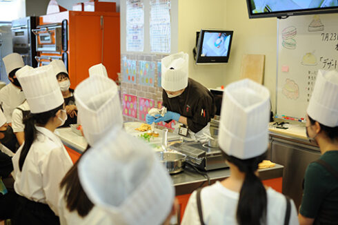 パティシエの入り口に触れるには良い機会となっており、10種類以上のお菓子の仕上げを行って、好きなだけ食べてもらおうという本企画。山本先生のデモンストレーションの後、スイーツごとの班にわかれて作業となりました。
